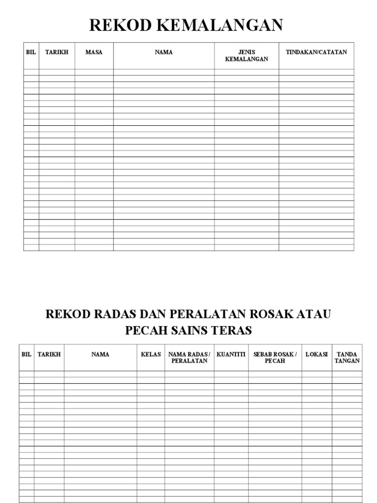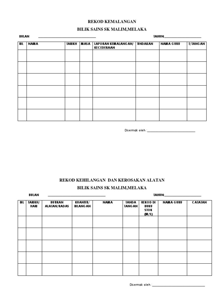 Contoh Rekod Kecemasan Dan Kemalangan Bilik Sains