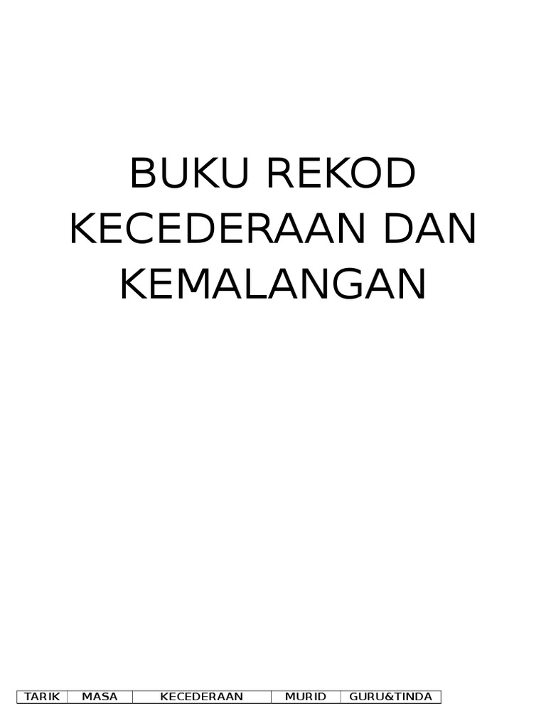 Buku Rekod Kecederaan Dan Kemalangan